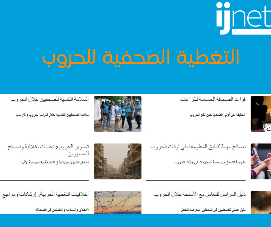 مجموعة الأدوات: التغطية الصحفية للحروب تقدّم شبكة الصحفيين الدوليين عددًا من الموارد حول التغطية الصحفية للحروب. التغطية الصحفية للحروب
