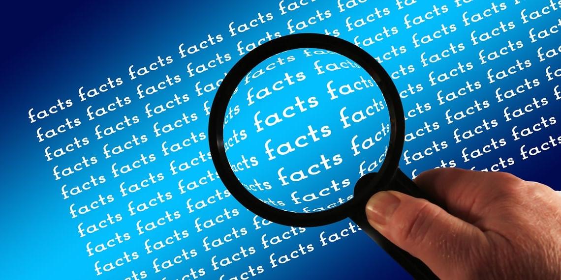 The word facts typed over and over again and a magnifying glass on top.