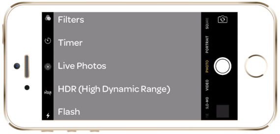 HDR (High Dynamic Range) é um recurso que permite capturar detalhes nos destaques, tons médios e sombras da sua foto. O iPhone faz isso capturando três imagens em rápida sucessão. As imagens são 1. Levemente superexpostas (para capturar detalhes nas sombras) 2. Exposição média (para capturar tons médios) e 3. Levemente subexpostas (para capturar detalhes nas luzes). A opção de menu permite que você defina como AUTO/ON/OFF Observação: No menu de configurações (Configurações> Fotos e câmera), você pode optar por salvar a foto “normal” e a foto HDR.
