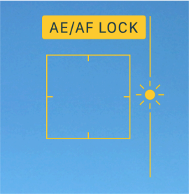 Para ter 100% de controle do foco e interromper o foco automático, você deve travar o foco. Para fazer isso, você não "toca" na tela — em vez disso, coloca e mantém o dedo na tela (na área que deseja focar) por 2 segundos, até que o quadrado apareça duas vezes e as palavras AE/AF Lock surjam na parte superior da tela em uma caixa amarela. Agora, o foco permanecerá bloqueado nesse ponto até que você toque na tela para retornar ao modo automático.